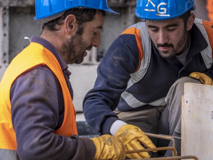 Arbeiter auf einer Baustelle (Bildausschnitt). Foto: © Joachim E. Röttgers GRAFFITI