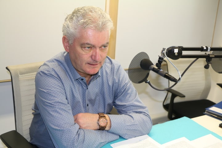 Hermann Hofstetter im Studio des Münchner Kirchenradios. Foto: Sankt Michaelsbund