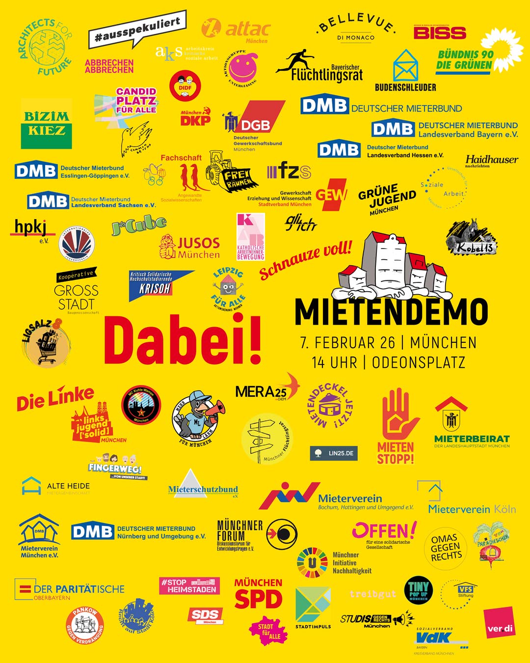 Mieten deckeln! Leerstand verhindern! Spekulation stoppen! Keinen Ausverkauf von öffentlichem Boden! Sozialwohnungen erhalten! Gemeinsam mit 120 Initiativen und Organisationen ruft die KAB München und Freising zur großen Mietendemo auf: Am Samstag, den 07.02.2026 am Odeonsplatz in München.